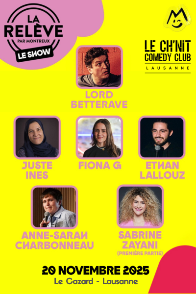 Sélectionné.e.s dans toute la francophonie par le Montreux Comedy, puis départagé.e.s par un jury de professionnels lors du festival Exclam de Montréal, ils et elles sont les grands gagnants de la finale 2025 de la Relève. 4 pays, 3 continents, ils et elles viennent de partout pour vous faire rire et sont l'avenir des blagues.